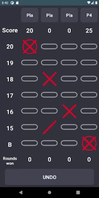Game Types: 101, 201, 301,..., 1001 (with finish suggestions and average scores) and Cricket From 1 to 4 Players Available also on iOS Thank you for downloading my app, if you need new features or observe some bugs please feel free to contact me :)