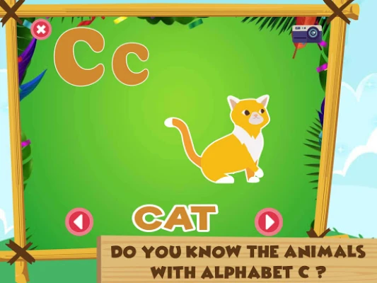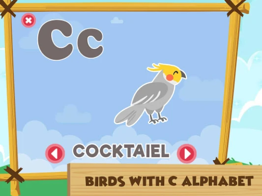 Aplikasi ini menyertakan daftar terpisah untuk nama-nama hewan yang dimulai dengan c beserta pengucapannya. Ada yang serupa untuk burung. Tidak hanya itu, tetapi sayuran yang dimulai dengan c, buah-buahan yang dimulai dengan c dan mengetuk benda-benda akan memunculkan nama-nama objek yang dimulai dengan c sebagai huruf awal. Aplikasi ini mandiri dan tidak menampilkan opsi atau pengaturan apa pun layar, membuatnya sangat ramah anak. Sangat menyenangkan suaranya membuat anak-anak tetap terlibat.