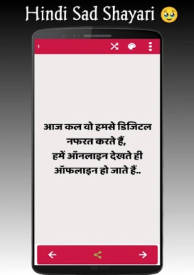 Introducing the ultimate Shayari App – your go-to destination for the latest and most beautiful Hindi Shayari and Sad Status ! This app features a vast collection of heartfelt Shayari, from romantic to emotional or other shayari to help you express your feelings with ease. Additionally, it offers a fresh and unique collection of Sad and Heartbreak Shayari to help you share your bold and confident side.
